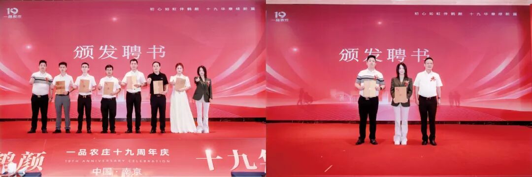 接着,大屏幕上播放了一品农庄发展历程VCR。视频多维度呈现了一品农庄十九年间为民服务、产业升级与文化传承中的珍贵影像。联合创始人高庆玲女士和李后庭先生精彩陈述了一品农庄的奋进历程。